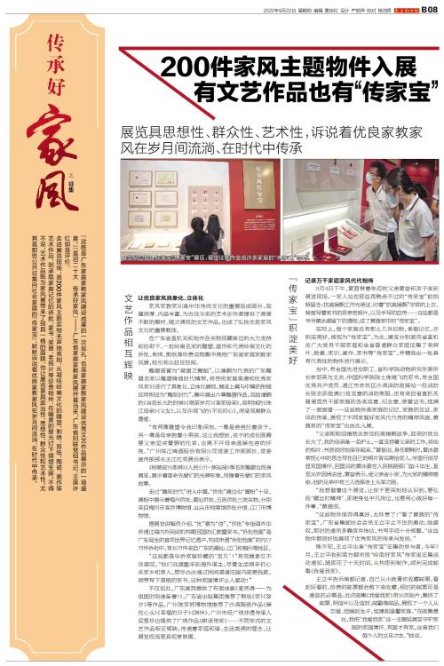 征集 “这既是广东家庭家教家风建设成果的一次巡礼,也是家庭家教家风建设优秀文艺作品展示的一场盛宴。”“喜迎二十大 传承好家风”——广东省家庭家教家风展开幕当天,广东省妇联党组书记、主席许红如