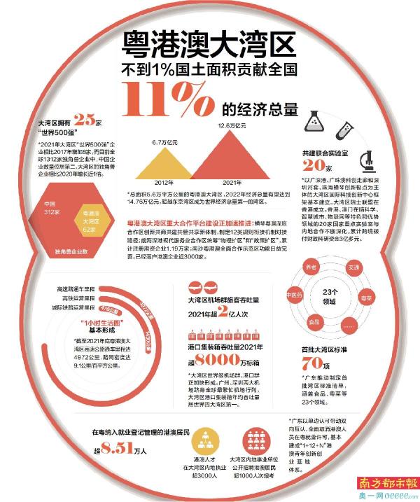 今天,粤港澳大湾区以不到1%的国土面积创造出全国11%的经济总量,成为全国开放程度最高、经济活力最强的区域之一,高质量建设粤港澳大湾区迈出坚实步伐,向着国际一流湾区和世界级城市群的目标前行。