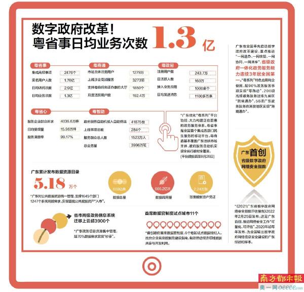 近年来,广东在全国率先启动数字政府改革,聚焦优化政务服务数字化流程再造,建机制、打基础、推应用,“一网通办”“一网统管”“一网协同”“一网共享”,全面推动政务服务能力实现跨越式发展,省级政府一体化政务服务能力连续五年居全国领先水平。