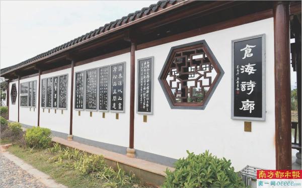 仓海诗廊位于广东省梅州市蕉岭县文福镇长隆村和白湖村交界,以晚清抗日志士、教育家、爱国诗人丘逢甲的别号“仓海”命名,是梅州市作家协会首个挂牌的采风创作基地。在原有自然景观的基础上,仓海诗廊还挖掘人文资源,展示姓氏家训,以诗书画扮靓乡村,用文化助力乡村振兴。