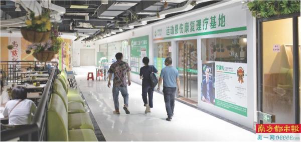 菜市场搬进了小区综合体中。白云区南悦商业中心有3层楼高,一层是菜市场,其他楼层有超市、餐厅和社区保健诊所等。