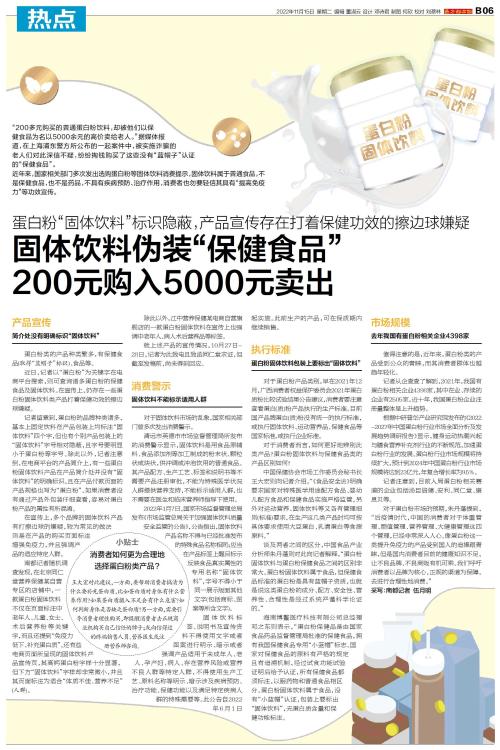 近年来,国家相关部门多次发出选购蛋白粉等固体饮料消费提示,固体饮料属于普通食品,不是保健食品,也不是药品,不具有疾病预防、治疗作用,消费者也勿要轻信其具有“提高免疫力”等功效宣传。