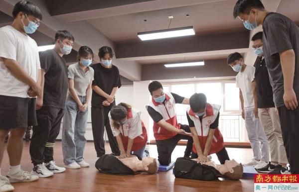 应急救护培训师为大学生讲解心肺复苏等知识。 新华社发