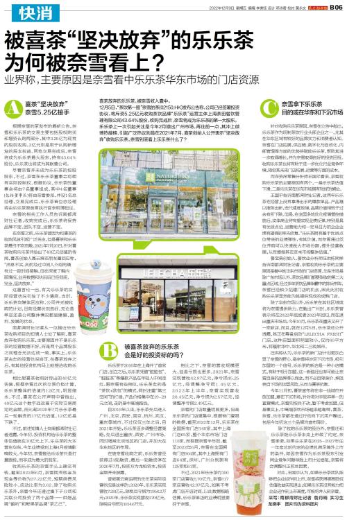 被喜茶“坚决放弃”的乐乐茶为何被奈雪看上?