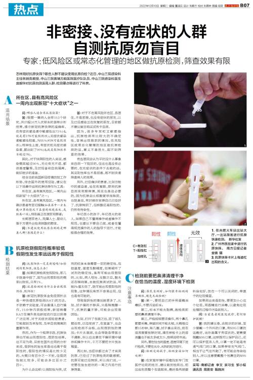 怎样用好抗原快筛?哪些人群不建议使用抗原自检?近日,中山三院感染科主任林炳亮教授,中山三院黄埔方舱医院医疗队队员、中山三院感染科医生庞毅华对抗原自测适用人群、检测要点等进行了科普。 A 适用场景