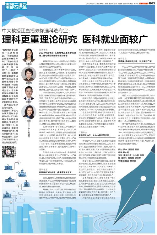 “我想学的专业要求什么选科组合?”“我想选的组合能报考什么专业?”“我的选科组合在高考赛场有何竞争情况?”……12月17日19:30,南都教育联盟联合中山大学招生办推出重磅选科选专业专场直播,特别