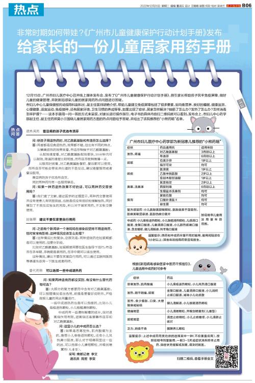 12月15日,广州市妇儿医疗中心召开线上媒体发布会,发布了《广州市儿童健康保护行动计划手册》,指引家长帮助孩子筑牢免疫屏障,做好儿童的健康管理,并就新冠感染儿童的居家用药热点问题进行答疑。 市妇