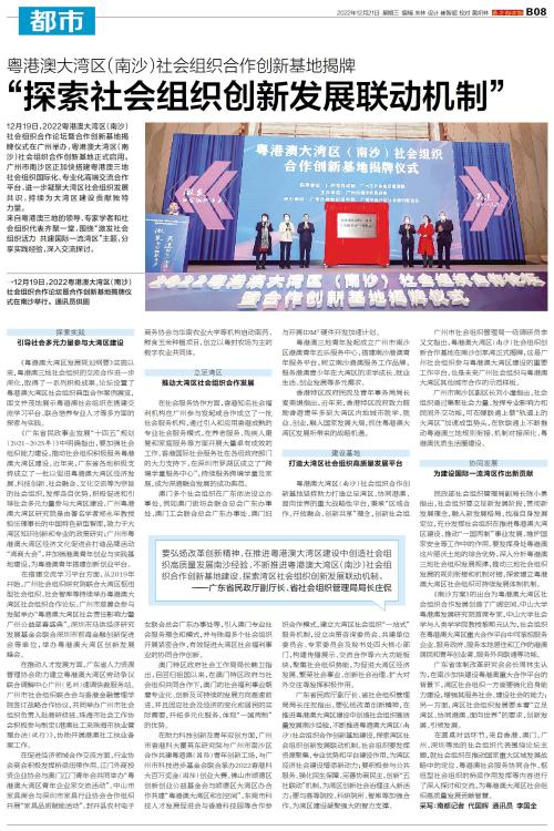 12月19日,2022粤港澳大湾区(南沙)社会组织合作论坛暨合作创新基地揭牌仪式在南沙举行。 通讯员供图 12月19日,2022粤港澳大湾区(南沙)社会组织合作论坛暨合