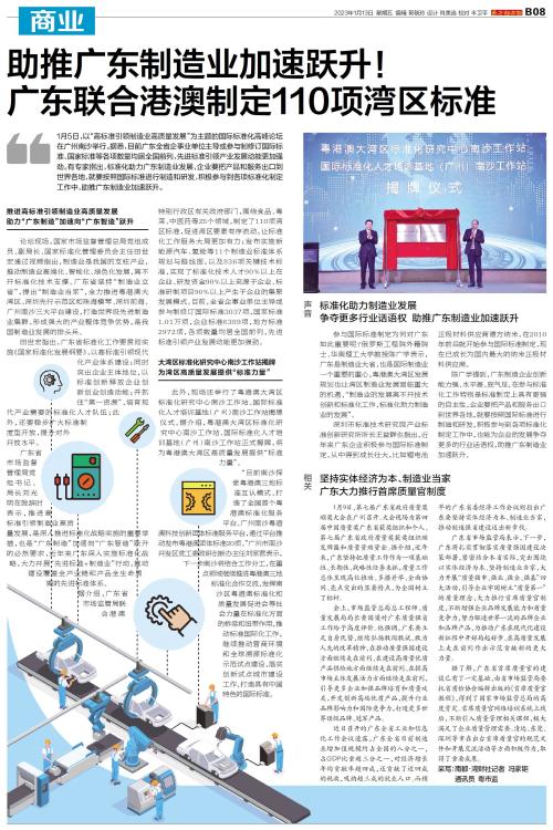 助推广东制造业加速跃升!广东联合港澳制定110项湾区标准