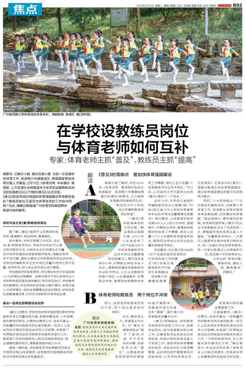 南都讯 记者孙小鹏 通讯员黄小熳 为进一步加强学校体育工作、促进青少年健康成长、厚植国家竞技体育后备人才基础,2月10日,《体育总局 中央编办 教育部 人力资源社会保障部关于在学校设置教练员岗位的