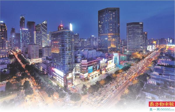 夜色下的天河商圈,车水马龙,人流如织。 (资料图片)