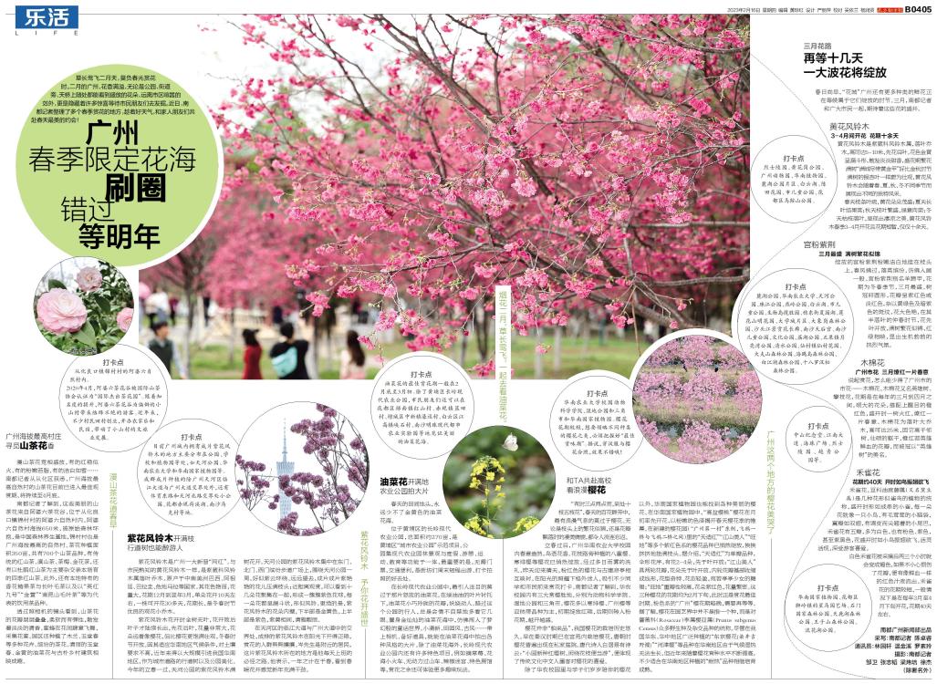 草长莺飞二月天,莫负春光赏花时。二月的广州,花香满溢,无论是公园、街道旁、天桥上随处都能看到盛放的花朵,远离市区喧嚣的郊外,更是隐藏着许多惊喜等待市民朋友们去发掘。近日,南都记者整理了多个春季赏花