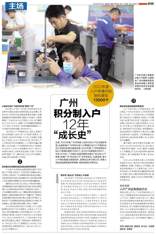 日前,2022年度广州市来穗人员积分制入户正式接受申请。这是新版《广州市积分制入户管理办法》(以下简称《办法》)实施后的首次接受申请。2022年度,广州市常规积分制入户类指标增至13000个,比2