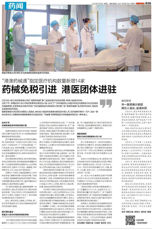 2月20日,新公布的粤港澳大湾区“港澳药械通”第二批指定医疗机构名单里,新增14家医疗机构。 当天下午,来穗投资兴业23年的香港特区居民刘小姐,坐在了广东祈福医院心血管内科的诊室里进行自己的高血