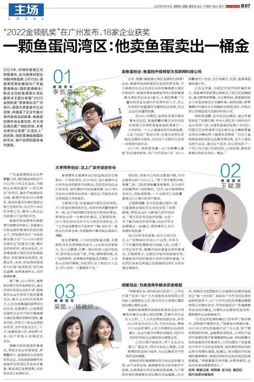 2023年,内地和香港正式恢复通关,也为粤港经贸合作翻开新篇章。3月15日,由香港贸易发展局与广东省香港商会(简称香港商会)联合主办的粤港澳大湾区服务业主题分享暨“2022金领航奖”颁奖典礼在广州