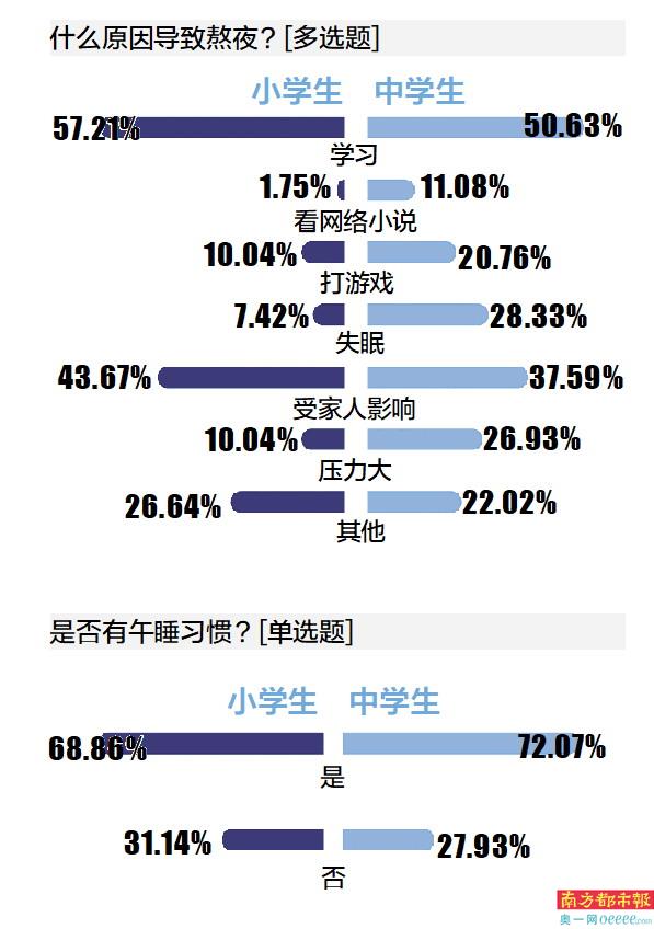 “我们之前的研究也是类似的结果,学生群体中最主要的睡眠问题还是睡得不够。”南方医院睡眠医学中心主任张斌表示,以年龄段来讲,中学生理论上最好睡到9个小时,小学生最好能睡到10小时,实际上学生们时间都达不到。