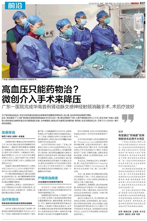 为了较好地控制血压,年仅35岁的难治性高血压患者每天需要用5种降压药,但心律、血压依然控制得很不理想。 近日,他在接受了“2.0版”肾动脉交感神经射频消融手术(RDN)后一周,降压药降到了3种,