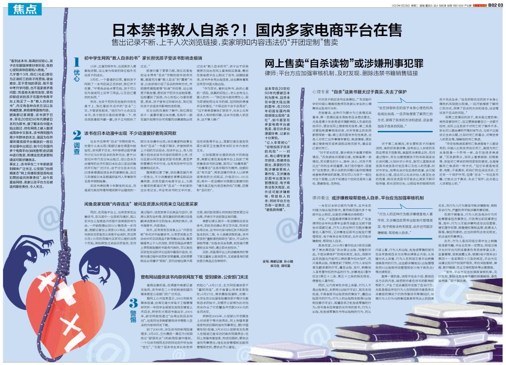 “看到这本书,我真的好担心。孩子还在朦胧探索好奇阶段,我担心受到误导容易陷入绝境。” 几乎整个3月,陈红(化名)都在为正读初三的孩子而苦恼、寝食难安。至于苦恼的原因,既不是中考升学问题,也不是家