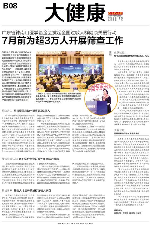 3月24-25日,在广州召开的中华预防医学会过敏病预防与控制专业委员会过敏性疾病精准防诊治高质量发展学术论坛上,该专委会联合广东省钟南山医学基金会联合发起全国性公益项目“呼吸健康万人筛查”——全国