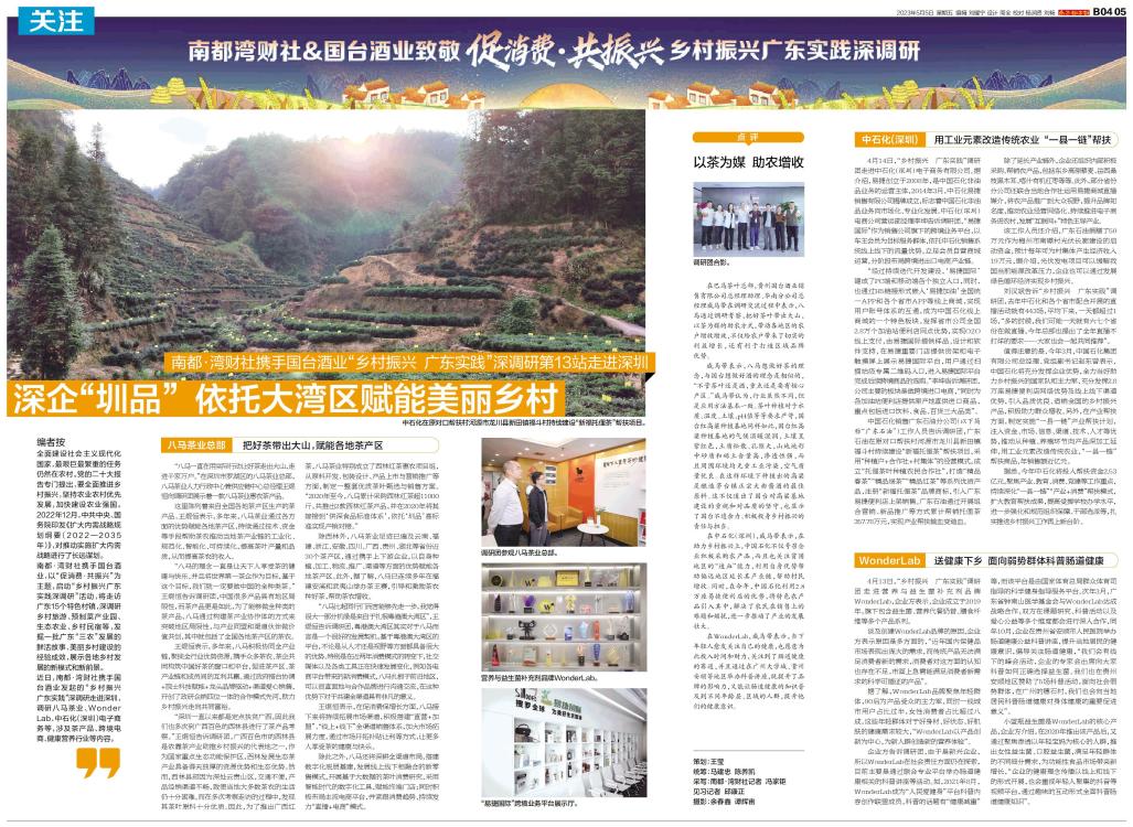 近日,南都·湾财社携手国台酒业发起的“乡村振兴 广东实践”深调研走进深圳,调研八马茶业、Wonder Lab、中石化(深圳)电子商务等,涉及茶产品、跨境电商、健康营养行业等内容。