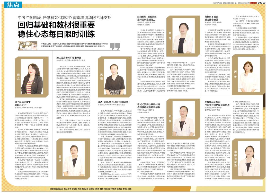 中考进入最后一个月冲刺,各学科应该如何统筹安排复习备考呢?南都教育联盟推出《中考冲刺宝典》系列课,邀请了华南师范大学附属中学的名师跟大家聊一聊如何高效备考、快速提分。