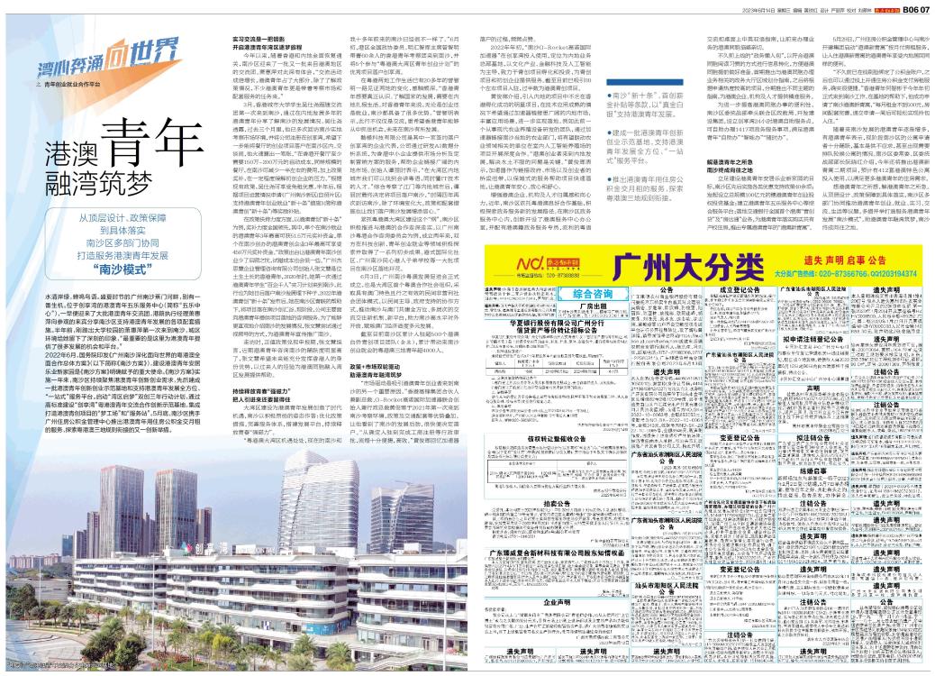 湾心奔涌向世界之青年创业就业合作平台 ●南沙“新十条”,首创薪金补贴等条款,以“真金白银”支持港澳青年发展。 ●建成一批港澳青年创新创业示范基地,支持港澳青年发展全方位、“一站式”服务平台。