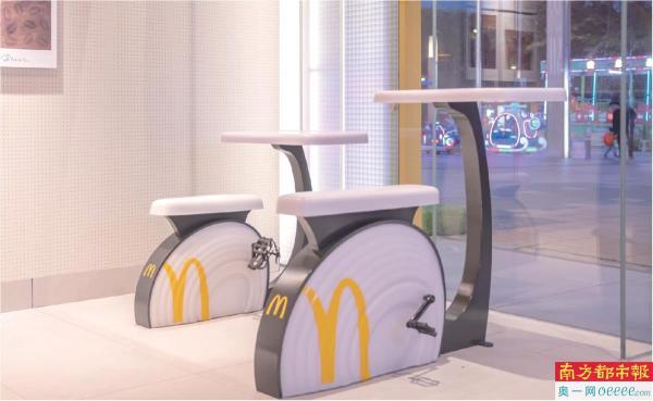 麦当劳云城南路餐厅一楼首次设有子母环保充电单车。