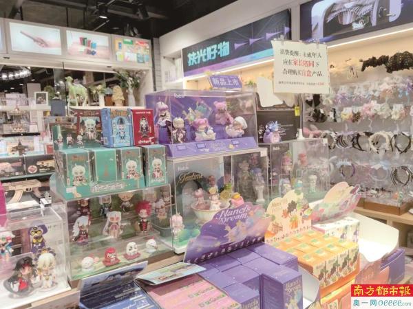 南都湾财社记者走访发现,除了文具店、书店外,一些零食集合店、百货店、化妆品店、潮玩物品集合店等均有盲盒产品销售。