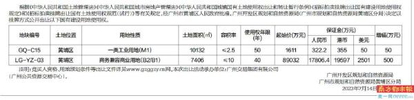 黄埔区、广州开发区国有建设用地使用权出让公告