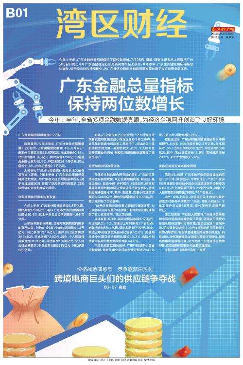今年上半年,广东金融总量指标保持了两位数增长。7月25日,南都·湾财社记者从人民银行广州分行召开的上半年广东省金融运行形势新闻发布会上获悉,今年以来,广东主要金融指标保持较快增长,信贷投向结构持续