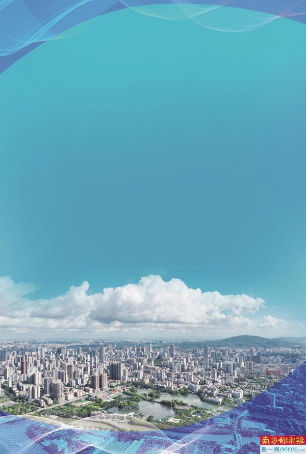 无人机航拍蓝天白云下的广州。 南都拍客 吴建业 摄
