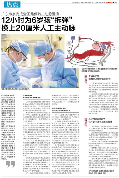 12小时为6岁孩“拆弹”换上20厘米人工主动脉