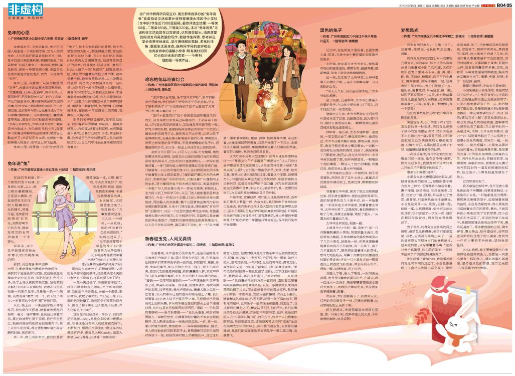 由广州市教育研究院主办、南方都市报承办的“兔年说兔”非虚构征文活动累计收到粤港澳大湾区中小学校(含中职)学生近7000篇投稿。最终评选出结果:一等奖60名,二等奖180名,三等奖320名。本次“兔