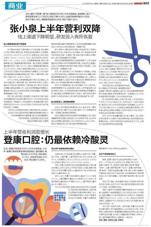 近日,登康口腔发布2023上半年业绩报告。上半年,登康口腔实现营收净利润双增长,报告期内,其营业收入6.67亿元,同比增长9.19%,归母净利润0.519亿元,同比增长13.48%。 四大类产品