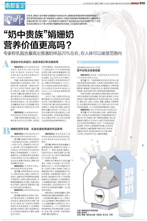 近年来,被誉为“奶中贵族”的娟姗奶产品持续火热,娟姗奶和普通奶营养价值有何差异? 是否有特定的适用人群?更容易使人发胖吗?为更好向消费者科普娟姗奶常识,南都湾财社消费科普栏目“买个明白”,近日邀
