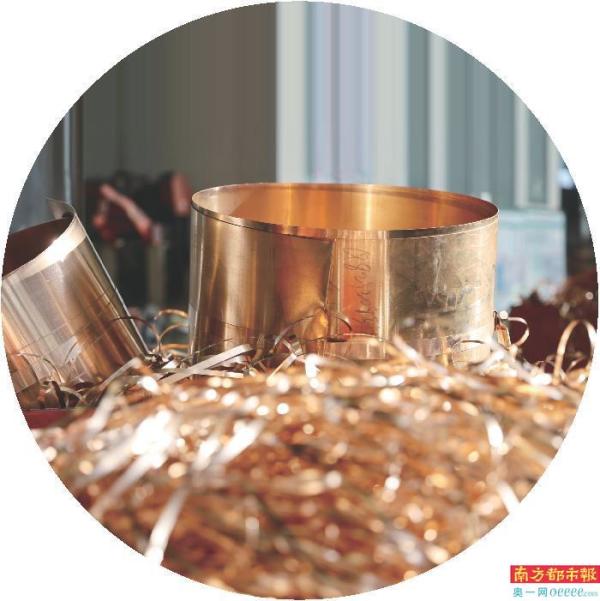 福紫铜公司产业园区的加工车间里,薄如纸张的铜带从机器中压出。