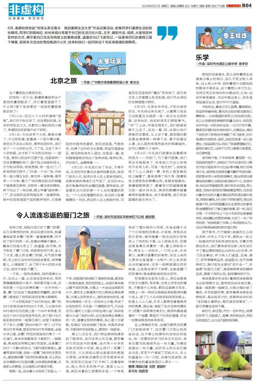 8月,南都校探发起“校探头条征集令 我的暑期生活大赏”作品征集活动,收集同学们暑期生活的缤纷瞬间。同学们积极响应,纷纷来稿分享属于自己的生活闪光片段。文字、摄影作品、视频,大家用各种各样的方式,展