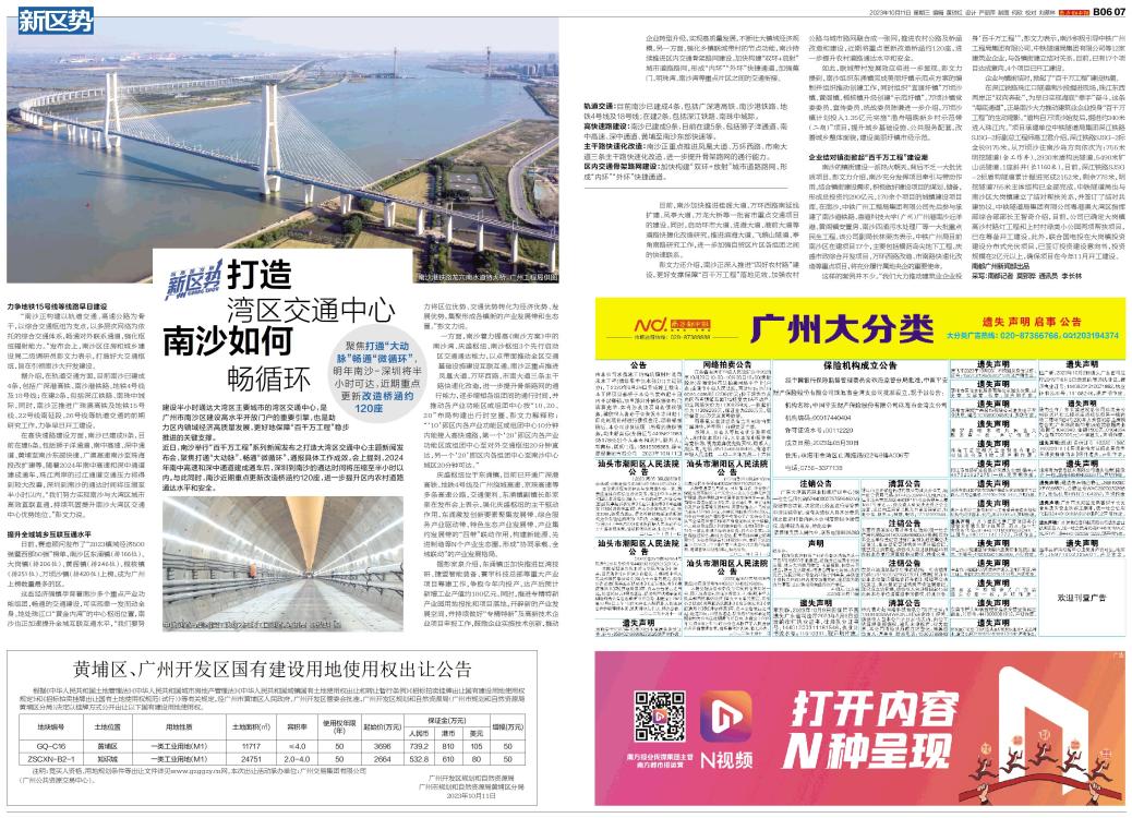 打造湾区交通中心 南沙如何畅循环