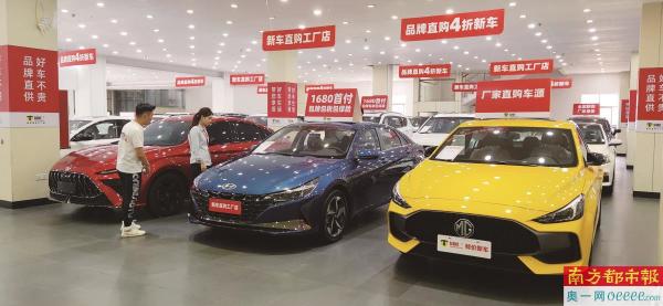 南都湾财社记者注意到,平时展示二手车的展厅已经分为豪华二手车与特价新车两个区域。据了解,这种“特价新车”的车源来自主机厂,一般在厂商处会有3-5个月的库存时间。同一品牌同款配置的“特价新车”,一次会采购8台以上,具体数量也会根据市场需求情况作出调整。不过,从现场可以看到,主流品牌的主销车型相对较少。展厅摆放着的,主要是星途追风、奇瑞瑞虎8、东风启程大V、东南DX8S、现代伊兰特以及名爵MG5、MG6等车型,售价为新车价格的5折到8折不等。