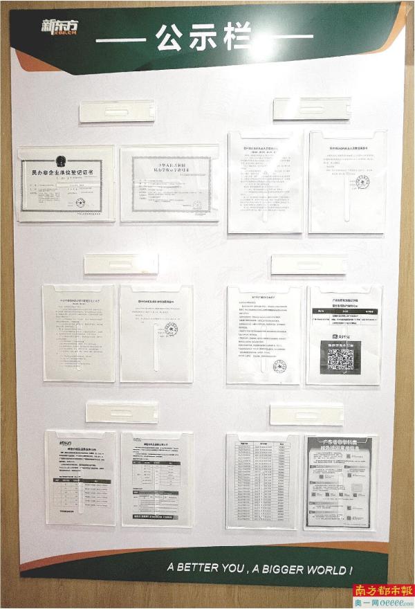 南都记者了解到,在教育局的某次检查中,某培训机构教学区虽然将所有材料都予以了公示,但未按要求将所有公示的内容都集中在一个区域,因此被要求按照规定重新调整公示栏的材料摆放位置。