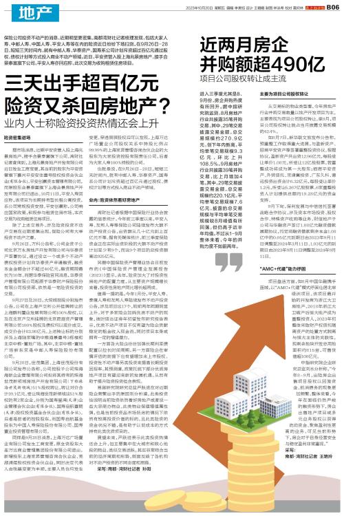保险公司投资不动产的消息,近期明显更密集。南都湾财社记者梳理发现,包括大家人寿、中邮人寿、中国人寿、平安人寿等在内的险资近日纷纷下场扫货。在9月26日-28日,短短三天时间内,就有中邮人寿、华泰资