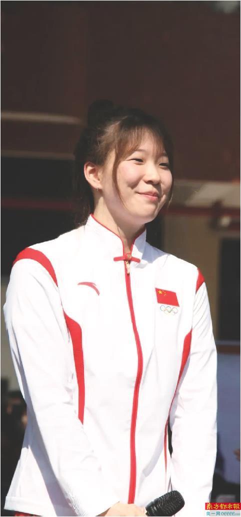 杭州亚运会女子50米仰泳冠军汪雪儿,现身广州市第七中学体育节开幕式现场。