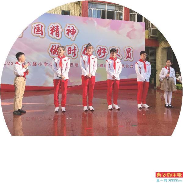 在东风东路小学庆祝少先队建队七十四周年暨新队员入队仪式上,杭州第十九届亚运会女子曲棍球冠军、第十四届全国运动会女子曲棍球冠军钟嘉琪;第十九届亚运会跳水男子双人3米跳板金牌得主何超、严思宇;广东省游泳队运动员、第十九届亚洲运动会女子50米仰泳冠军、女子100米仰泳亚军汪雪儿惊喜亮相。冠军们一进校园,少先队员就为亚运冠军们戴上红领巾,用少先队特有的方式表达对亚运冠军的敬爱与欢迎。