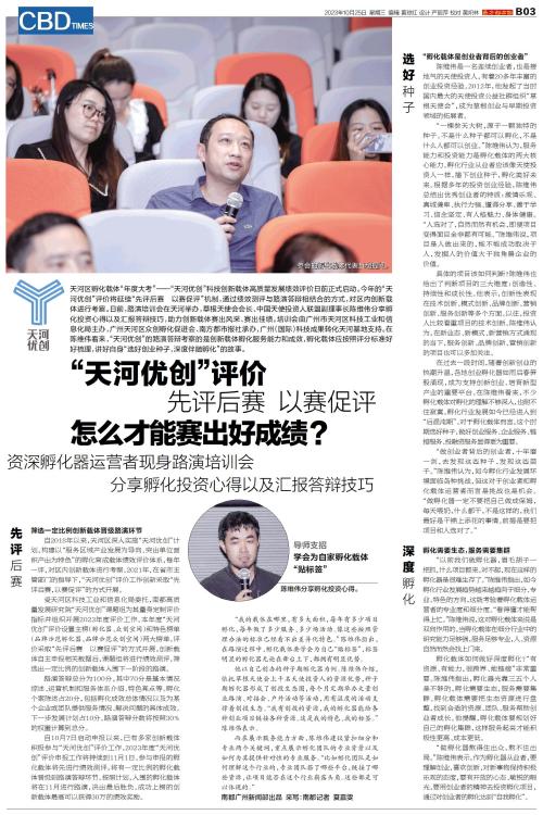 天河区孵化载体“年度大考”——“天河优创”科技创新载体高质量发展绩效评价日前正式启动。今年的“天河优创”评价将延续“先评后赛 以赛促评”机制,通过绩效测评与路演答辩相结合的方式,对区内创新载体进行