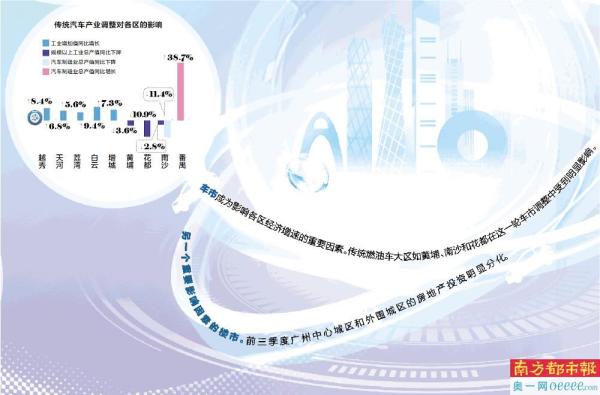 今年前三季度广州全市经济数据一个显著特点是车市楼市进入调整期,1-9月广州汽车制造业增加值同比下降6.4%,房地产开发投资同比下降6.6%,但是从十一区的经济数据看,这一轮车市楼市的调整对各区的影响呈现出显著的两极分化。