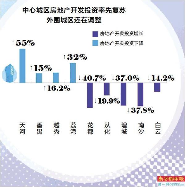 中心城区的天河、越秀、荔湾的房地产投资已经率先复苏,前三季度房地产投资增速全部超过两位数(海珠区未公布此项数据),越秀同比增长16.2%、荔湾同比增长32.0%,其中天河房地产开发投资同比增长55%。