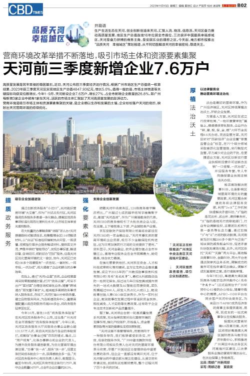 天河前三季度新增企业7.6万户