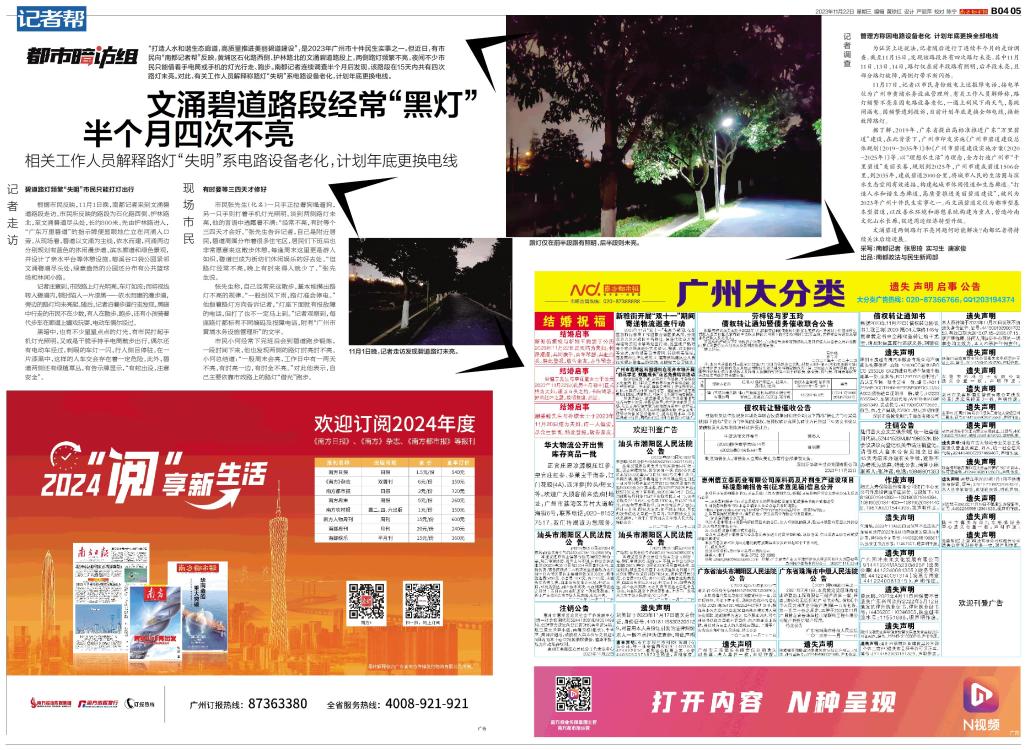 “打造人水和谐生态廊道,高质量推进美丽碧道建设”,是2023年广州市十件民生实事之一。但近日,有市民向“南都记者帮”反映,黄埔区石化路西侧、护林路北的文涌碧道路段上,两侧路灯频繁不亮,夜间不少市民