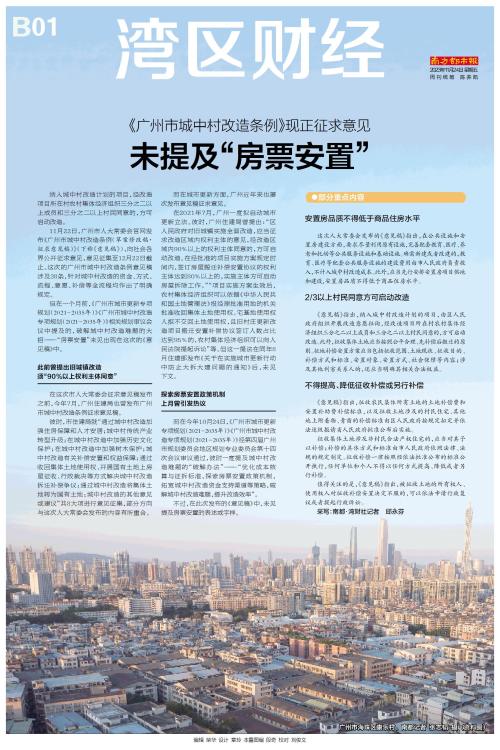 纳入城中村改造计划的项目,经改造项目所在村农村集体经济组织三分之二以上成员和三分之二以上村民同意的,方可启动改造。 11月22日,广州市人大常委会官网发布《广州市城中村改造条例(草案修改稿·征求