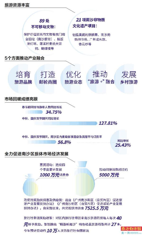 近年,南沙立足培育旅游品牌、打造邮轮商圈、优化旅游业态、推动“旅游+”融合、发展乡村旅游五个方面推动产业融合,不断挖掘区域特色,构建全域旅游产品体系,形成了全域旅游发展新格局。
